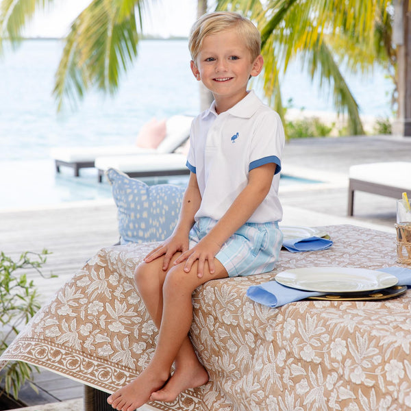 Introducing the Sheffield Shorts in Sycamore Seersucker Stripe with Wood Boat Blue accents—the perfect blend of style and comfort for active kids. Crafted from breathable seersucker fabric, these shorts feature a classic striped pattern that pairs beautifully with the rich wood boat blue trim. Ideal for warm weather play, casual outings, or summer adventures, they offer a polished look that transitions effortlessly from playground to family gatherings. Durable construction ensures they'll keep up with your child's energy while maintaining their vibrant appearance wash after wash.