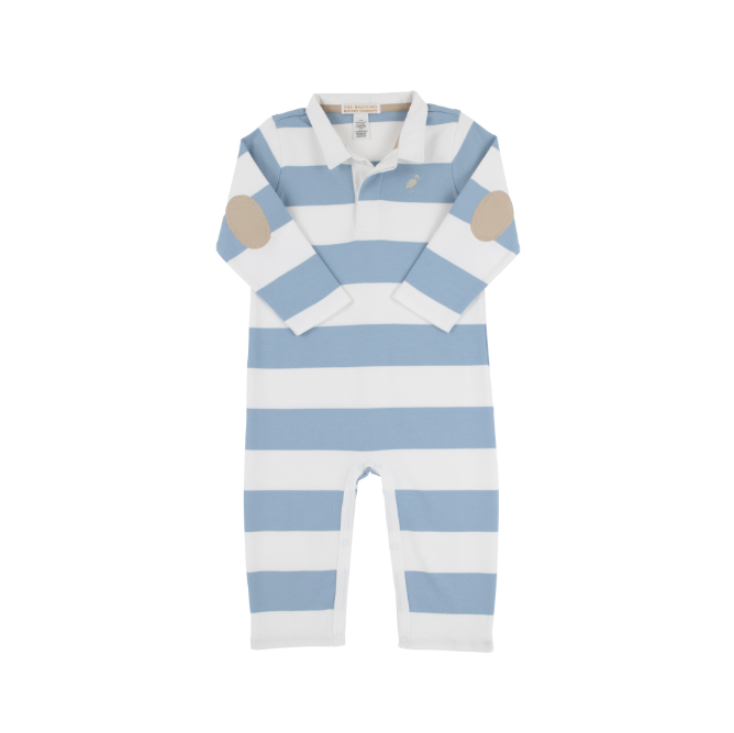 Sir Proper`s Rugby Romper - Large Barrington Blue Stripe/Keeneland Khaki/Worth Ave White
