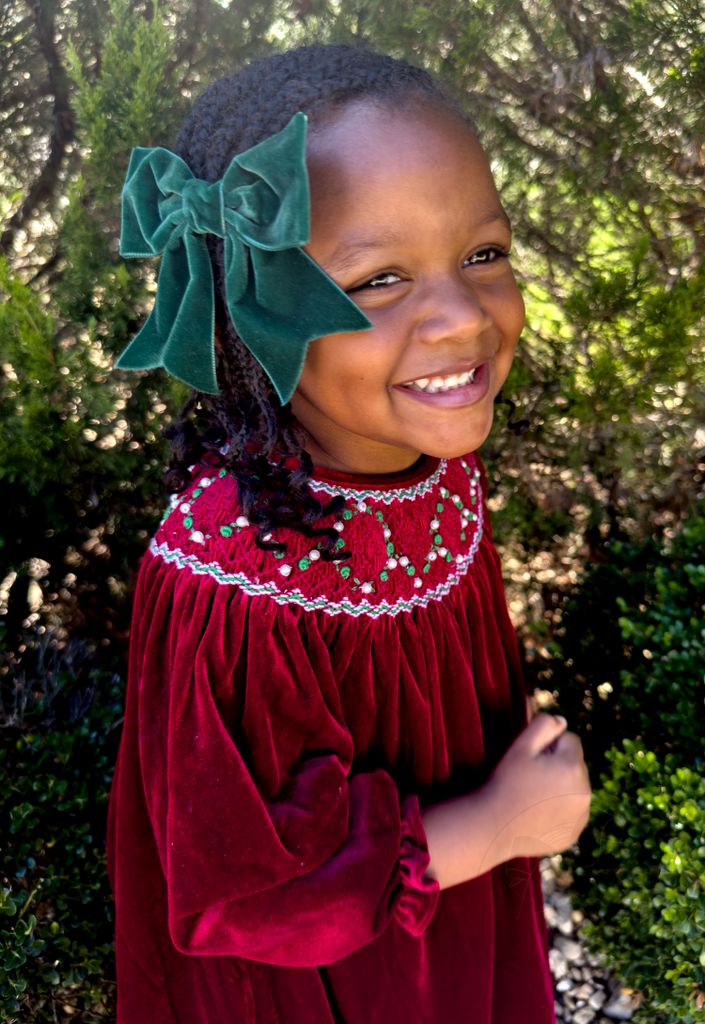Sophistication at its finest! Our small king velvet bowtie has fancy cut tails for that special occasion look! These bows are sure to stay in her hair all day with our patented WeeStay™ no-slip hair clip.