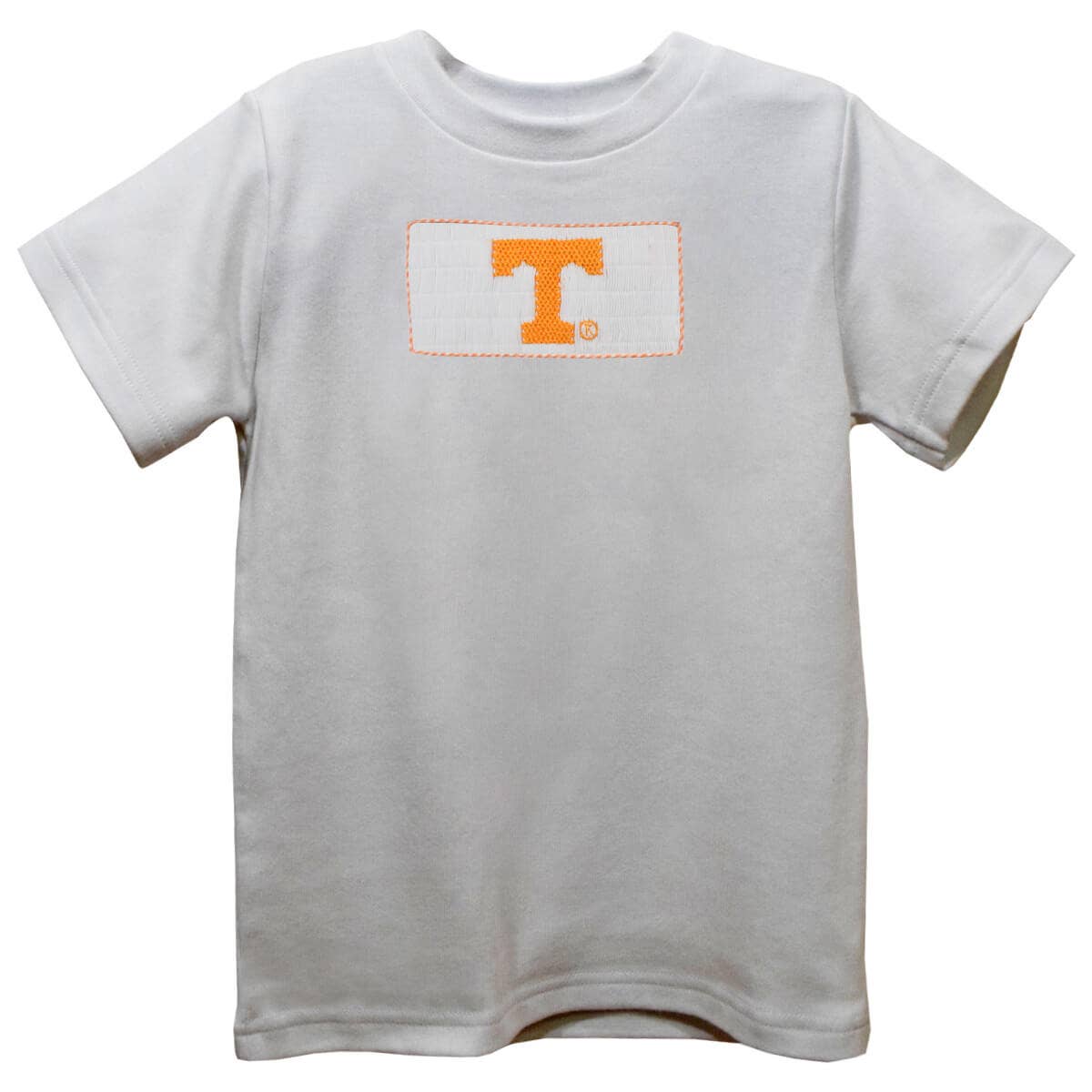 Tennessee Vols Smocked White Knit Short Sleeve Boys T-Shirt - 2T is backordered and will ship as soon as it is back in stock.